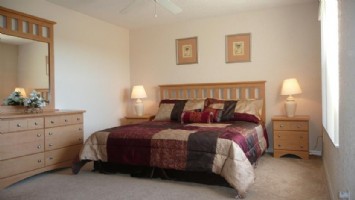 The lounge/Dining Room has dining table with 6 chairs 2 sofas and a coffee table, this room leads onto the patio. There are ceiling fans in most rooms also. Villa Betty Boo does not back onto other properties but has a relaxing lake view. We have a flat screen plasma tv in the lounge and cable tv in all bedrooms with dvd palyer and telephone in lounge.