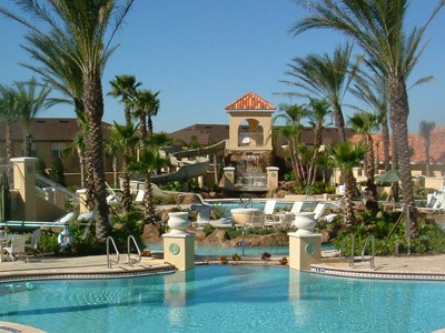 REGAL PALMS RESORT & SPA has it's own on-site private WATER PARK. Now floodlit to open until 11pm. We also have a hugh outdoor screen for dive-in-movies by the pool. Set in 2 acres of tropical landscaped surroundings, with extensive sundecks, waterfall, 2 large heated pools, one for the adults and one for the children, a LAZY RIVER and WATERSLIDE plus a whirlpool/Spa! With the added benefit of complimentary towels and lounge chairs along with waiter service for the pool area. You can pick up the wireless internet connection from here and in the bar and terrace areas. There ia also a new volleyball court as well.