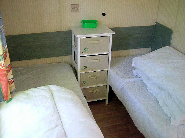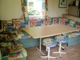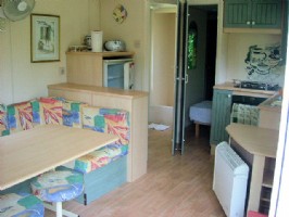 A spacious Willerby Cottage mobile home which comfortably sleeps 6. It is situated on a 3-star woodland campsite at Camping du Quinquis on the coastline at Le Pouldu. There are:- 2 bedrooms (1 double and 1 twin) Lounge/dinette area which conver