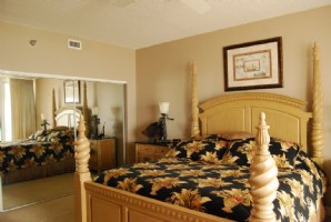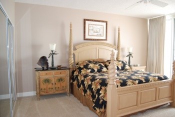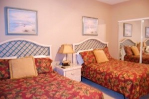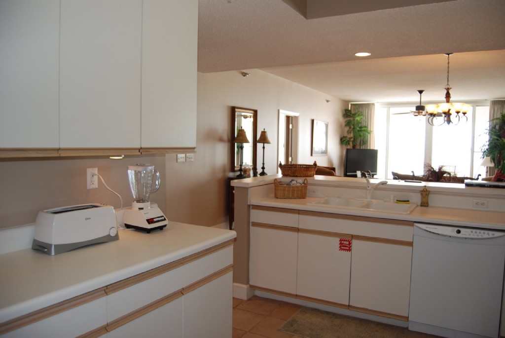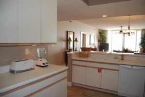 The large master bedroom has a king-size bed and a whirlpool tub in the private bath. The second bedroom has two double beds and the living area has a queen-size sofa. The condo will sleep eight. There are ample linens and closet space for everyone. The kitchen has lots of cabinets and is equipped with everything you will need to make you feel right at home.