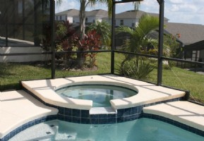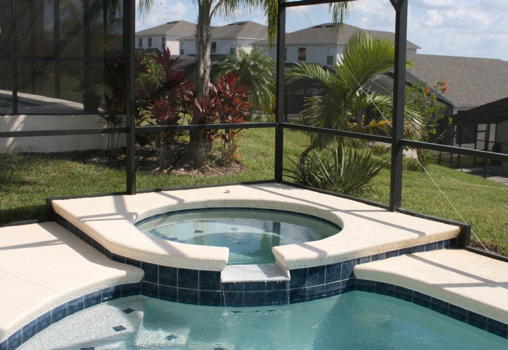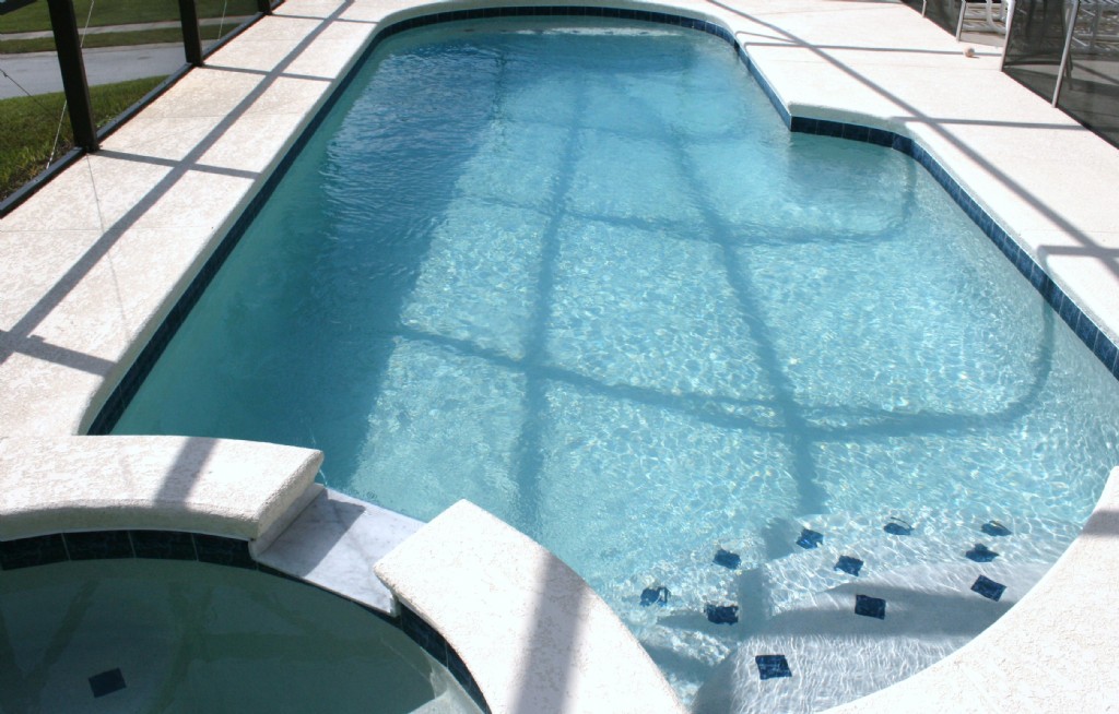 Private south facing screened swimming pool and spa.