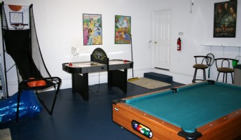 Fully equipped Games room with pool table, basketball game & Air Hockey.