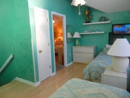 Only 50 steps to beach,with no roads to cross. Doecorated in vibrant Caribbean colors, our 2 story beach house has a great ocean view and located in Ocean Front Ocean Lakes Resort, with many activities provided at no charge.