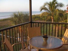 Sanibel, Gulf-Front Condominium, Corner Unit With Breathtaking Views. Relax in your beautifully appointed, gulf-front, two-bedroom two-bath, tropical retreat. This third-floor, corner unit has been completely refurnished, and is nicely appointed with quality items such as leather recliners, rattan dining set, and very comfortable furniture. Conveniently located on East Gulf Drive, Sandalfoot Condominiums is a 'AAA approved' complex located just minutes from the causeway, and within walking distance of the Sanibel Lighthouse, dining, shopping, fishing, and, of course, world-famous shelling. Highly responsive, friendly, on-site management staff will ensure all your needs are met. Other on-site amenities include a heated swimming pool, tennis and shuffleboard courts, bike rentals, gas grills, cable TV, VCR/DVD player, DVD library, free high-speed wireless Internet access, elevator and laundry facilities in each building. Sleeps four.
