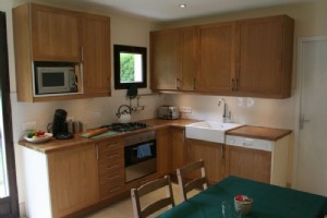 The gite is arranged on one floor with both bedrooms and the bathroom accessible from the main kitchen/diner. French doors from both bedrooms with direct access to the garden.