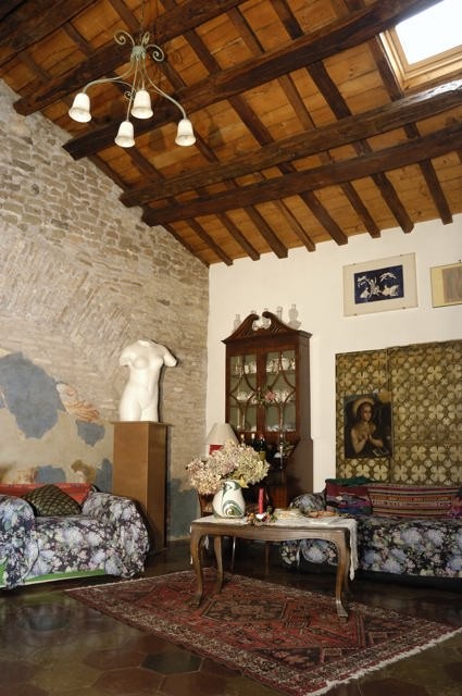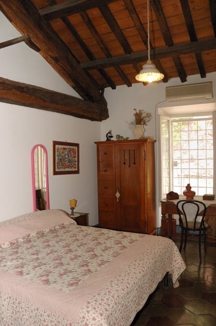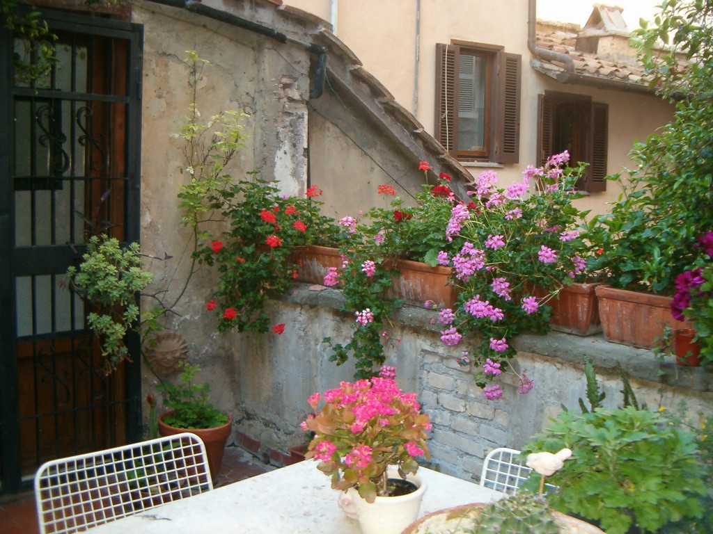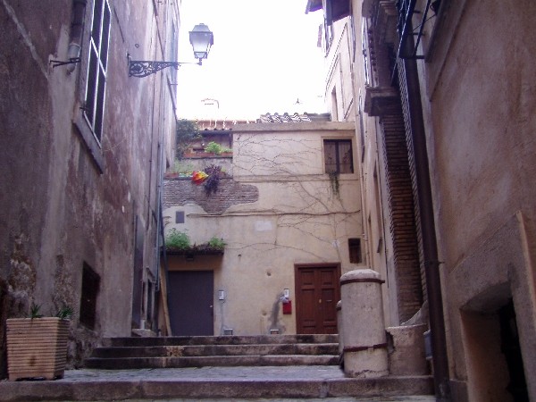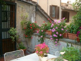 Located in the heart of Rome, steps from Piazza Navona and the best known antique shops street, via dei Coronari, this independent one storey building is 1000 years old, has an original fresco painted in the 15th century,skylights, sloping ceilings, exposed wooden beams and a beautiful terrace. To reach the front door there are 27 steps wide and easy to climb. Inside, from the front door to the living area, there are 29 more.