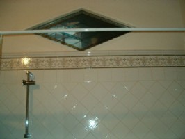 The entrance hall leads to the kitchen, bath room,