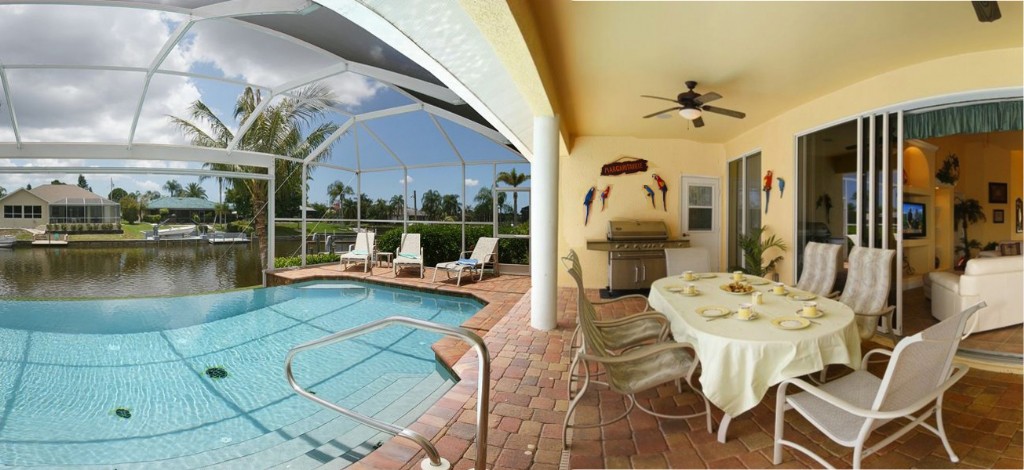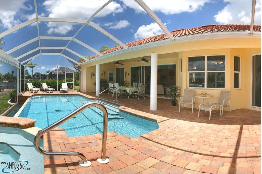 This is not a regular rental! Owners use the house for vacation/retirement. Southern exposure on a 200' saltwater canal with Caribbean landscaping in the quite but central Golf-Club Area in SE Cape Coral.