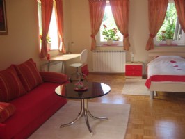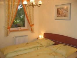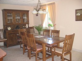The Chalet has three floors. In the ground flloor is an entrance hall, well equipped kitchen, large sitting room with dining room and big fireplace 'brick built' - very cosy place, and a bathroom with washing machine and dryer. In the first floor you have one bathroom with bath and shower and one separate toilet and three bed rooms One double room- very romantic, one small blue room with sofa bed and and a big red room with two single beds size 120cm and one sofa bed for two persons.In summer the house keep very fresh , which is really appreciate and in winter it is very easy and quick to heat and turn into a cosy haven for your winter wonderland stay. The Chalet has tv, dvd and satellite system The entrance hall leads to the terrace where is a very nice table and chairs with beautiful view on the garden and trees. Behind the house you have also a wooden deck for outdoor eating and barbecue, swings for children and a private basketball court.