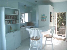 The Cottage offers a King size four poster bed, 3'x 7' glass wall in the shower given you the feeling of an outdoor shower while the convenience of being inside. A full size refrigerator in the compact kitchen offers you the ability to cook a full meal or just stock those treats to take on your beach and hiking trips. Between your private deck and the pool you tanning hours will be more then enough to show off to your friends when you return. (clothing is optional as the Cottage is that private.)