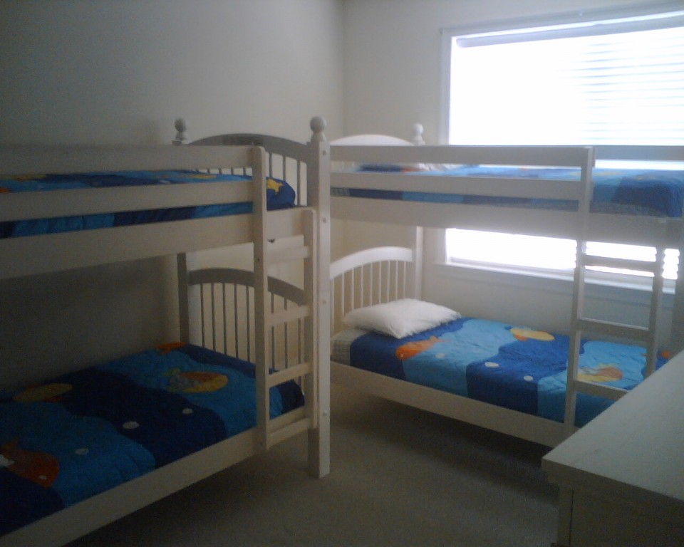 The house has a master bedroom on the first and second floor and a kid’s room with 2 sets of bunks therefore allowing 8 to sleep comfortable! The house also has its own garage and is located just 100 steps to the pool, tennis court and clubhouse. Private backyard provides an area for the kids to play.