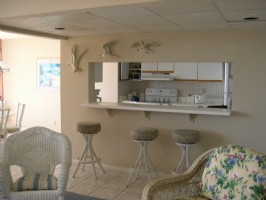 The open arrangement of the living-dining area allows a smooth flow of traffic for family or groups having fun at the beach. Enjoy playtime using the amenities: tennis, racquetball, shuffleboard, or the game room.