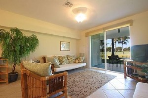 We have been coming to Waikoloa for many years. We have stayed at The Shores and the Vista Waikoloa. The Fairway Villas were built in 2003. After renting in The Fairway Villas a couple of trips we decided to buy a condominium. We find this condominium comfortable with wireless/wired broadband Internet access, stereo, DVD player, and all the amenities you would expect in a new condominium. Kona coffee taste much better on our lanai than it does on the North Carolina beach. This condominium is ground floor unit so that lanai extends out into a wide lawn overlooking the ninth fairway surrounded with colorful fragrant tropical flora. There is no need to lug the groceries or golf clubs up the elevator. Our condominium is also at the very end of the road so there is no traffic to contend with.