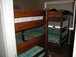 Two King Master Suites (private bathrooms), One Queen Suite, Two sets of bunkbeds in bedrooms 4 amd 5 (sleeps 8) will easily accommodate a large group. Enjoy grilling or simply the outdoors from one of two decks. Spectacular views of the slopes and the Shenandoah Valley can be seen from both great rooms or the three bedroom suites!