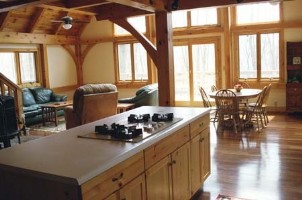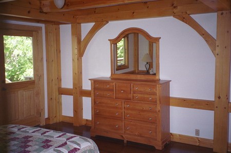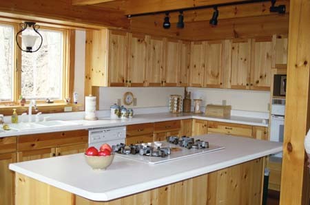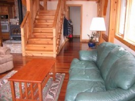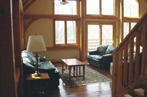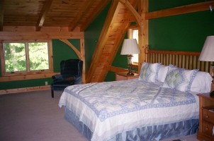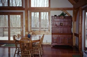 Listen to the breeze through the trees and the brook falling over rocks from your bedroom or while enjoying a glass of wine on the deck.Watch the moon rise in the skylight amid the natural pine posts and beams of this solar-powered timber-frame (post-and-beam) home.