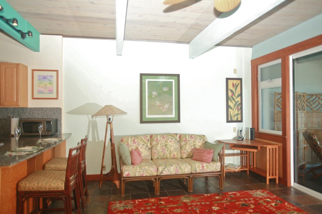 This charming cottage like studio is the perfect place to spend a relaxing vacation right on the ocean's edge!! Literally 20 feet from the ocean, you cannot beat the view from the lanai!! Perfect for lounging, dining, reading. . . You name it! You won't want to leave the view!