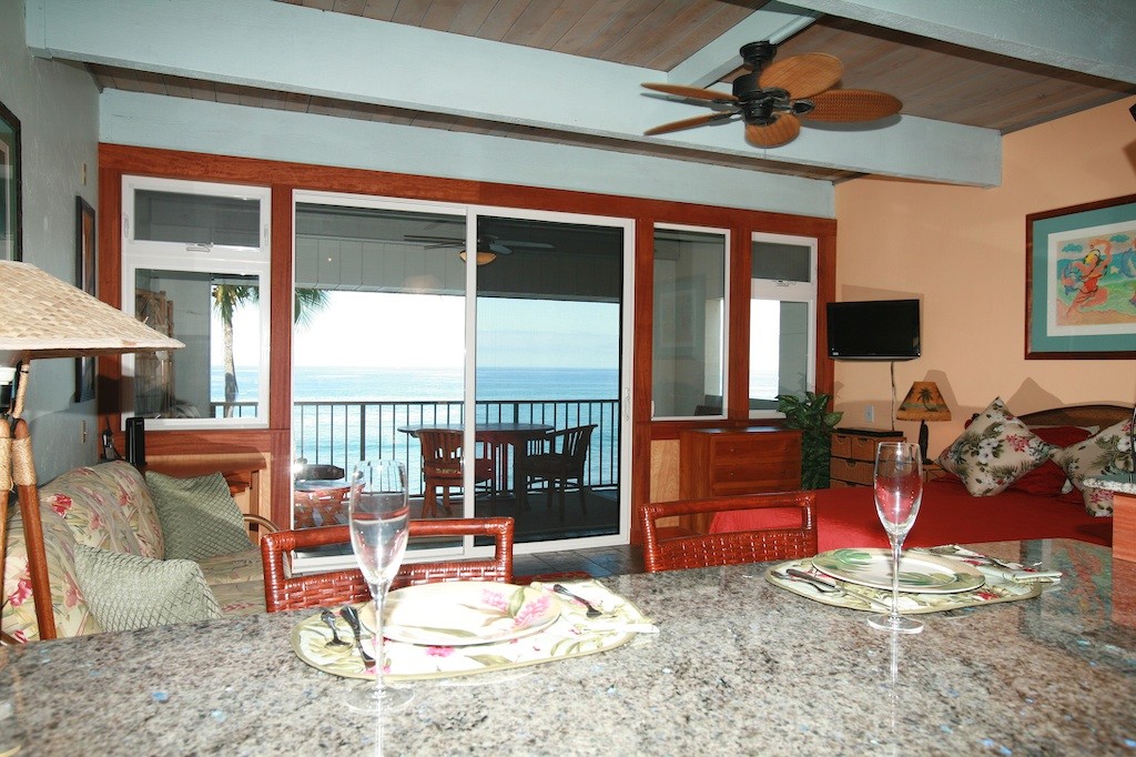All the comforts of home, but you're in Hawaii, enjoying the fabulous weather, sights and sounds! An end unit located on the top floor of a four-story building, this oceanfront condominium not only boasts first-class views but has excellent proximity to Kona town and all activities as well.