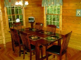This vacation destination is exactly what you would imagine a peaceful retreat in the mountains to be. Our pristine log cabin is beautifully furnished with 3 bedrooms, 2 full bathrooms and loft - sleeps 8 comfortably on 2 finished levels. From the stone wood-burning fireplace in the 2-story great room, open dining room, covered front porch, 2 rear porches (one is screened-in) overlooking a wooded grove, washer/dryer, and modern kitchen you will surely enjoy this home-away-from-the hustle and bustle! Located in the 4-season Massanutten Resort, you can walk 1 block to a park with fishing, playgrounds, picnic shelters & arboretum. The ski slopes, golf courses, horseback riding, hiking, convenience markets, restaurants and more are also right there. We’ve included everything from linens & towels to games, cable TV & high-speed wireless Internet and firewood to make your stay in this beautiful Shenandoah resort easy and comfortable. This house is special no smoking or pets.