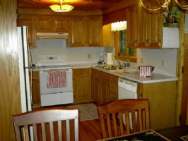 Features: Ground Floor: Enter the great room from the front porch. Massive log beamed ceiling, wood walls, floors and ceilings. Dining area and equipped kitchen have a door to the rear screened porch.