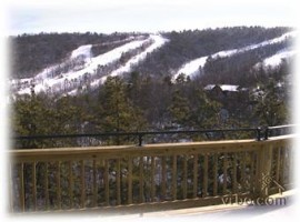 Grey Rocks Lodge has 5 total bedrooms (four with queen size beds, and one with a set of two sturdy bunk beds). Each bedroom has a spectacular view of the slopes. The 3rd floor has two queen bedrooms, a full bath, and a cozy TV/sitting area that offers incredible views. The main level has a queen master bedroom with a large bath featuring a whirlpool tub, separate shower stall, and two vanities. There is a powder room and laundry room just inside the front door. The fully-equipped kitchen features granite counters and stainless steel appliances. Four kids can eat at the kitchen counter. The kitchen opens into the 8 person dining room and great room. The main great room features a fantasticly massive stone (gas) fireplace, luxurious leather seating, a TV and a 30 foot wall of windows facing the slopes. The lower level features two more bedrooms, another great room full of windows, a pool table room, and a huge bath featuring a large tub and separate shower.