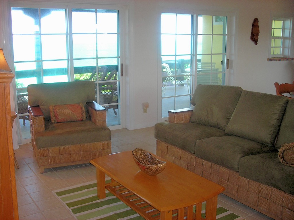 The first floor villa has a private furnished lanai where you can relax and enjoy the gentle trade winds, admire the tropical gardens, and listen to the hypnotic ocean surf as it laps the shore.