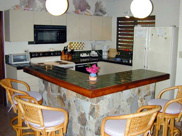 The bright and spacious open style living and dining areas with high ceiling are adjacent to the airy kitchen. The classic breakfast bar opens onto a wrap around balcony. The open Caribbean style floor plan with native tile and decorations make island living easy and convenient.