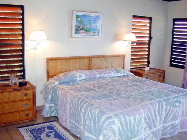 Serendipity has accommodations for six guests, The air conditioned master bedroom is furnished with a king bed, private bathroom and private patio. The second bedroom has a king bed and ceiling fan, and the third bedroom is air conditioned with two twin beds. These two bedrooms share a bathroom.