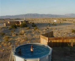 This is our most requested "couple's get-away" home. With Authentic Mexican architectural character, the house becomes an ideal setting for a private escape. This house features privacy and sits on 5 acres of fenced and gated natural Mojave Desert. The comfortable furnished patio with BBQ and outdoor fireplace offers unrivaled and unspoiled views of the Joshua Tree National Park mountains and desert. A pool and hot tub is set out under the awesome desert stars. The office/porch allows you to go on-line and get your most creative work done with 180 degree views. A rustic charmer with ultra modern convenience.